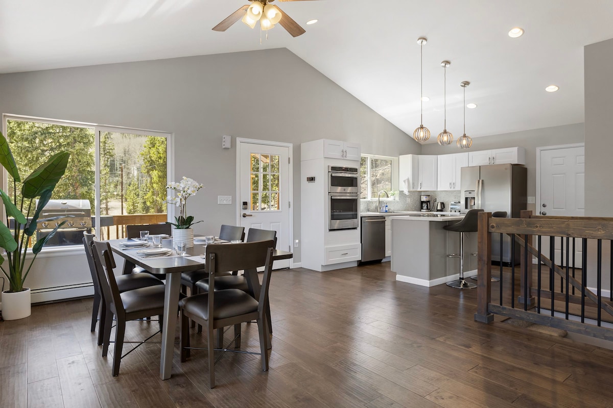 Moderno rifugio di montagna con finiture di lusso, aree di intrattenimento e adatto alle famiglie. Può ospitare fino a 4 persone con 3 letti, 2 camere da letto e 2 bagni. Include una vasca idromassaggio, una doccia a vapore, un barbecue a gas, un camino, un patio coperto con riscaldamento, una cucina professionale, un parcheggio, fauna selvatica e un'oasi privata nel cortile sul retro. Facile accesso. A circa un'ora da Denver, 1 ora e 15 minuti dall'aeroporto, vicino a sentieri, parchi e laghi. Vietato organizzare feste, portare animali domestici e fumare; massimo 8 persone in totale (visitatori inclusi).