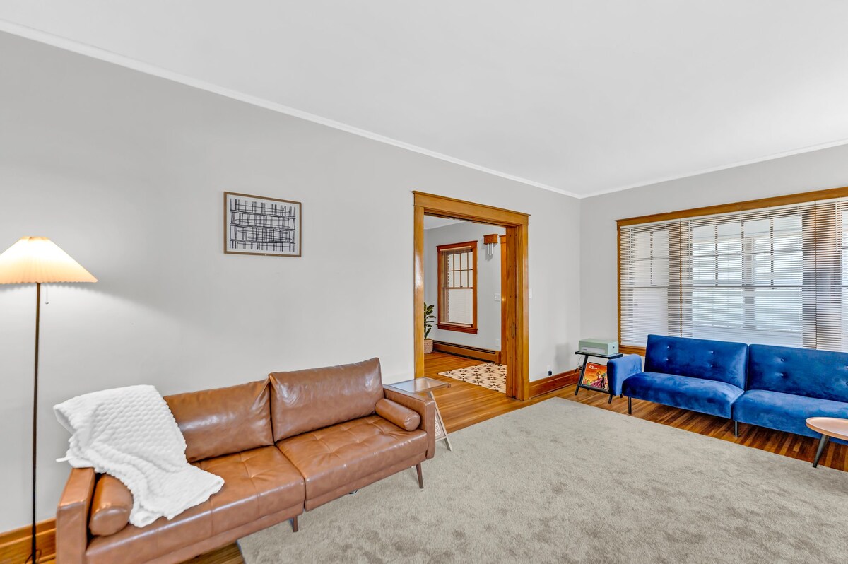Casa con quattro camere da letto e due bagni, situata in una strada tranquilla nel cuore di Buffalo, a pochi secondi (letteralmente) dai ristoranti e dai negozi di Elmwood Avenue e a pochi minuti dal resto della città. Lo spazio è stato progettato appositamente per soddisfare le tue esigenze di ospite, con comode caratteristiche come serrature intelligenti sulle porte anteriori e posteriori per un facile accesso, parcheggio privato, nuovi materassi confortevoli, nuove lavatrici extra large al secondo piano, wifi veloce, smart TV Roku e molto altro ancora!