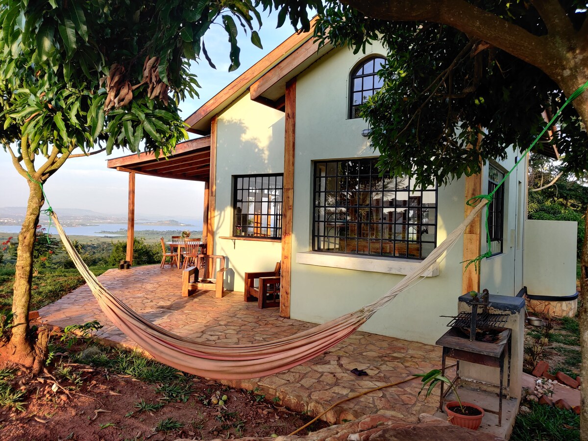 Prenditela con calma in questo spazio unico e rilassante a 15 minuti dal centro di Jinja. Goditi lo spettacolare panorama ininterrotto di oltre 5 chilometri del fiume Nilo dal balcone privato, svegliati con il canto degli uccelli e addormentati con il frinire dei grilli. Passeggia nel giardino recintato con fiori e alberi da frutto. Non lontano si trovano strutture turistiche e attrazioni. Questo è l'Uganda naturale al suo meglio.