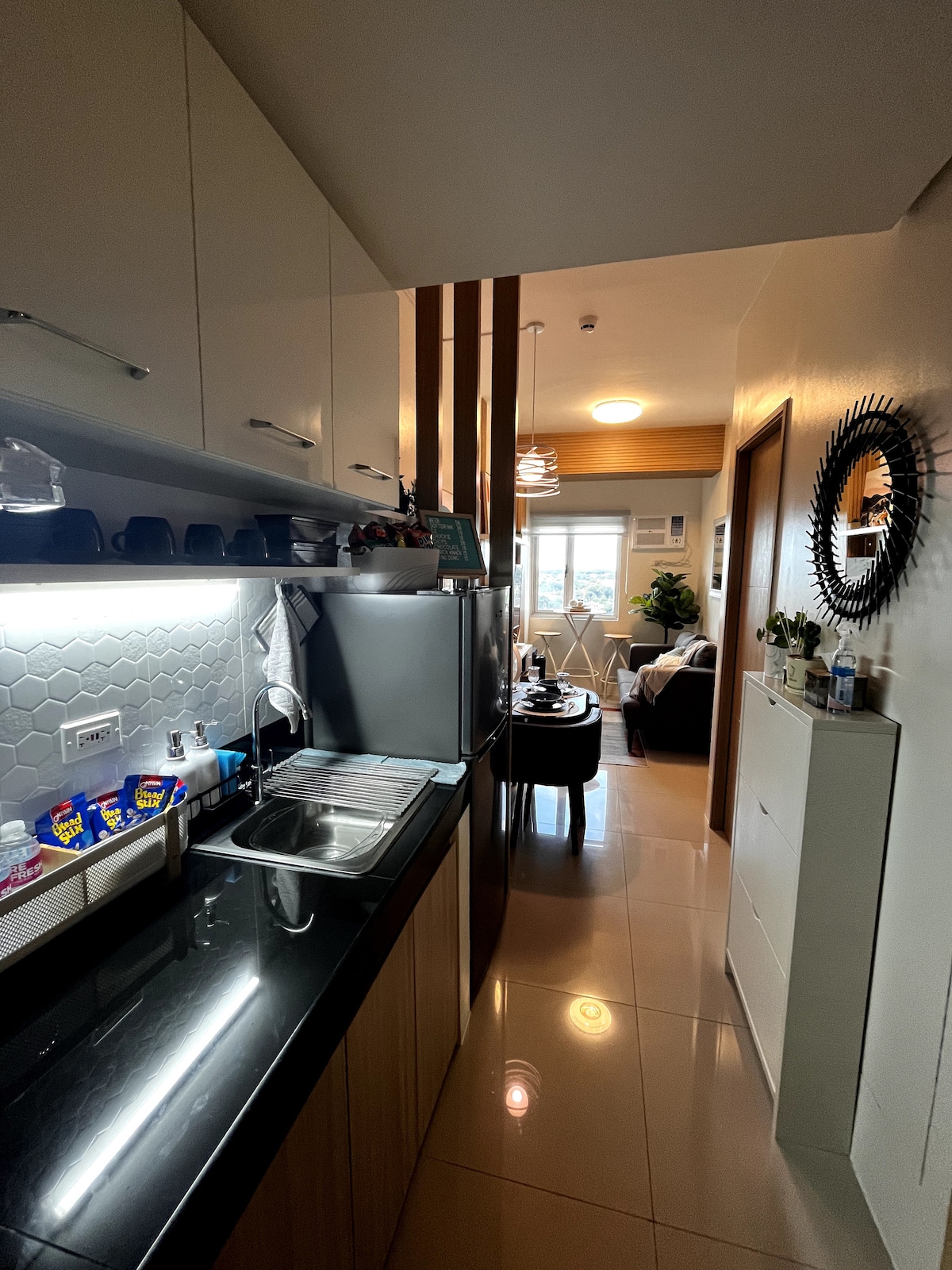 Cozy 100-sqm (2-storey) minimalist home in Apalit, Pampanga — perfect for 4–6 guests. Features Wi-Fi, aircon, smart TV, living room, ref, iron, ironing board, kitchen with microwave, kettle, stove (free 1 butane), ricecooker, free coffee & water, washing machine & dryer. 2 exterior CCTV. 📍Walking distance - Main Gate - MCGI - School - Robinsons Easymart - Premier Hospital - Cafés & local eateries ✅Grabfood ✅Airport Transfer 🔐Check-in: 2PM / Check-out: 11AM. ❌No pets allowed inside.