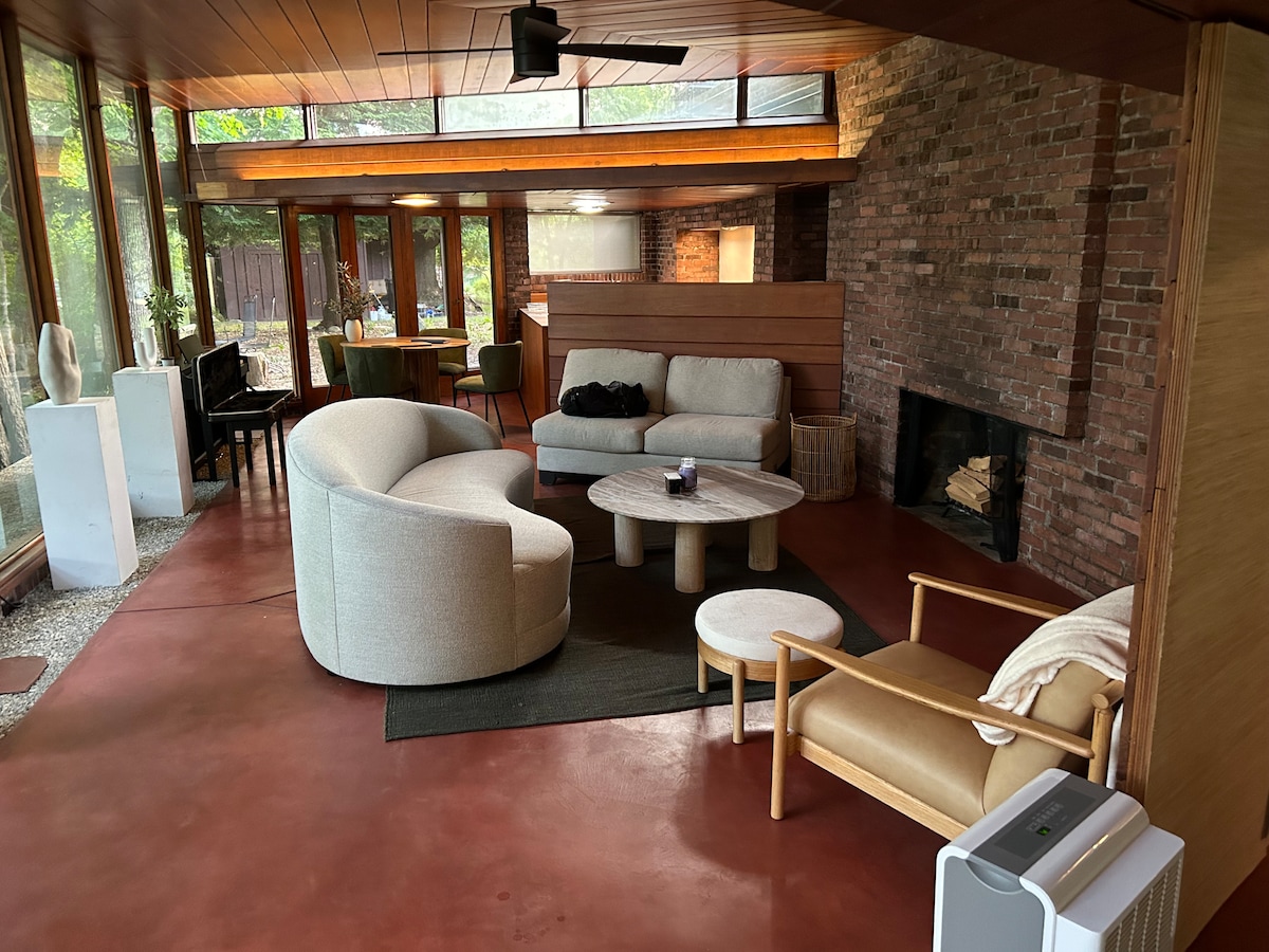 Barn Swallow Manor: un fienile del 1900 trasformato in un elegante edificio in stile moderno di metà secolo e arredato con oggetti originali degli anni '50 e '60. Questo rifugio adatto ai cani (non ai gatti) può ospitare 6 persone su 4,6 ettari di prati e alberi. A pochi minuti da Tanger Outlet, Gun Lake Casino e Grand Rapids. Vicino a Yankee Springs, Holland e Saugatuck. Sorseggia un caffè in terrazza, passeggia nella natura o rilassati in un ambiente retrò-chic dopo una giornata di avventure. La Barn House è perfetta per le vacanze in famiglia o semplicemente per riunirsi con gli amici.