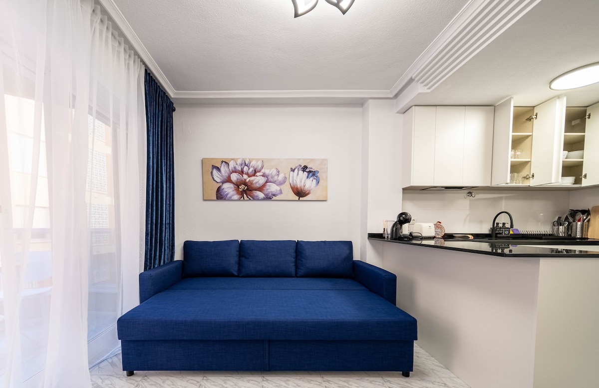 Monolocale su una delle migliori spiagge di Torrevieja Los Locos. Nel complesso in prima linea con piscina (aperta da giugno ad ottobre). Il parcheggio sotterraneo nel garage è disponibile tutto l'anno. È disponibile il trasferimento dall'aeroporto di Alicante (a pagamento). WIFI, aria condizionata, letto grande e comodo, TV da 55 ". Il bagno ha un pavimento riscaldato. Grande balcone. Per il check-in tardivo c'è un negozio aperto 24 ore su 24 nelle vicinanze. Nelle vicinanze c'è una vasta selezione di ristoranti, noleggio scooter. Il centro dista 10 minuti a piedi.