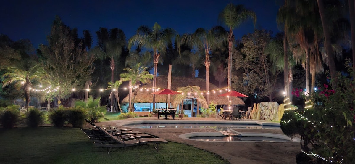Esclusiva casa di campagna circondata da bellissimi lecci, ampi giardini e vista sulle montagne. La casa dispone di 3 camere da letto, 2 bagni, soggiorno, sala da pranzo, terrazza e cucina completamente attrezzata. La proprietà dispone di un piccolo laghetto che vi farà sentire in un posto molto speciale. Potrai godere della piscina, di 2 bagni esterni, di una palapa, di un barbecue, di un trampolino, di un campo da pallavolo e di mini porte per il calcio. È il luogo ideale per portare la tua famiglia a trascorrere un weekend straordinario.