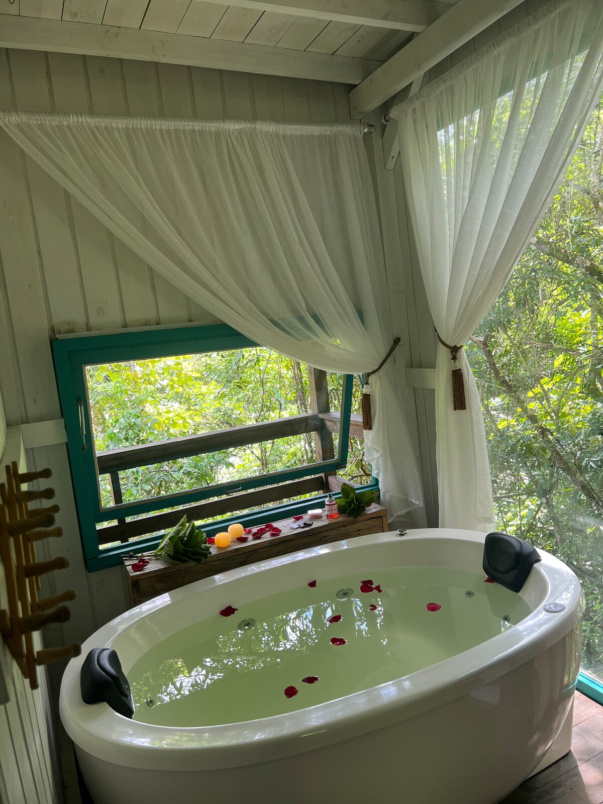 Chalet nel cuore della natura, dal design moderno e accogliente, ampie finestre che offrono una vista mozzafiato sulle montagne. È dotato di caminetto, barbecue, parrilla, stufa a legna, vasca idromassaggio al suono del torrente e cucina completamente attrezzata. L'alloggio include biancheria da letto ed asciugamani di alta qualità. Situato a 20 minuti da Itajaí e a 30 minuti da Balneário Camboriú, con rapido accesso al BR101. Perfetto per chi cerca relax e comfort in un ambiente esclusivo ed elegante.