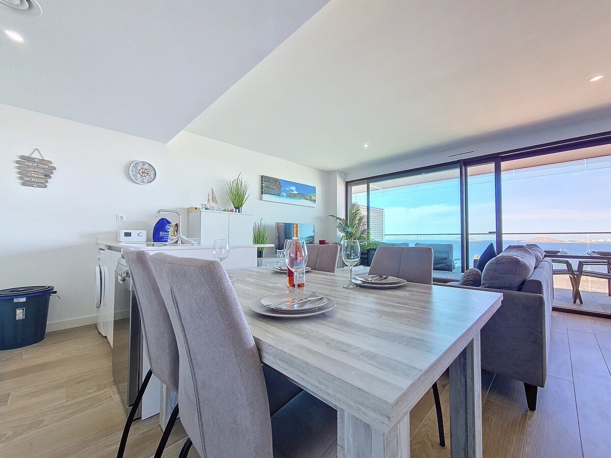 Appartamento sul mare, in un ambiente naturale con viste spettacolari. Aria condizionata nella camera da letto principale, wifi, lavastoviglie e posto auto. 2 camere da letto e 1 bagno, cucina e un soggiorno con terrazza, ideale per quattro persone, dispone anche di un divano letto 135 nel soggiorno nel caso in cui siate qualcuno in più. La baia si trova sotto l'appartamento, con accesso. Ideale per praticare immersioni, paddle sup, canoa.. In estate è fresco, ma abbiamo l'aria condizionata per quei giorni estremi.