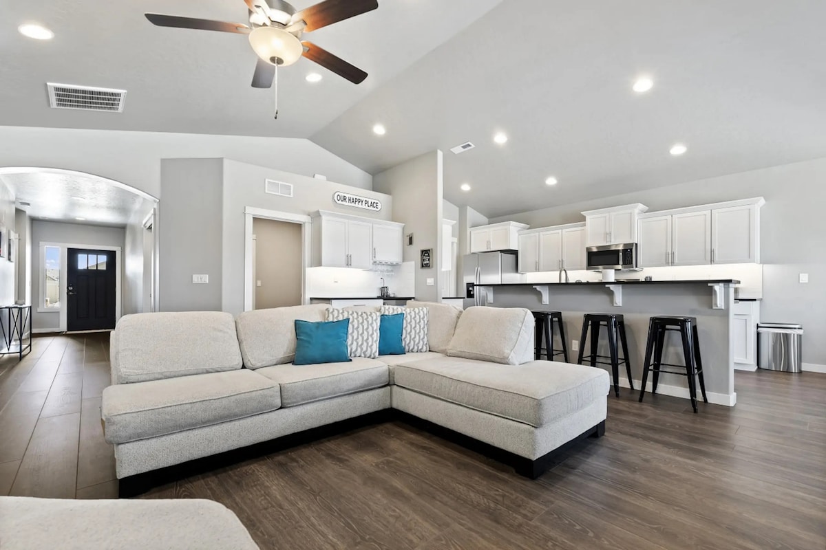 Immergiti nel fascino di questa casa a tema viaggio! A pochi minuti dall'autostrada e dai servizi di Nampa/Caldwell. Questa casa è perfetta per le famiglie! Goditi il cortile con posti a sedere nel patio coperto e braciere. Il garage è stato trasformato in un secondo spazio abitativo arredato con divano, tavolo da gioco, smart TV e console di gioco. Questa casa è stata progettata in modo unico per trasportarti in un'oasi confortevole, il tutto con i servizi di una casa normale. Questa casa ha tutto il necessario e anche di più!
