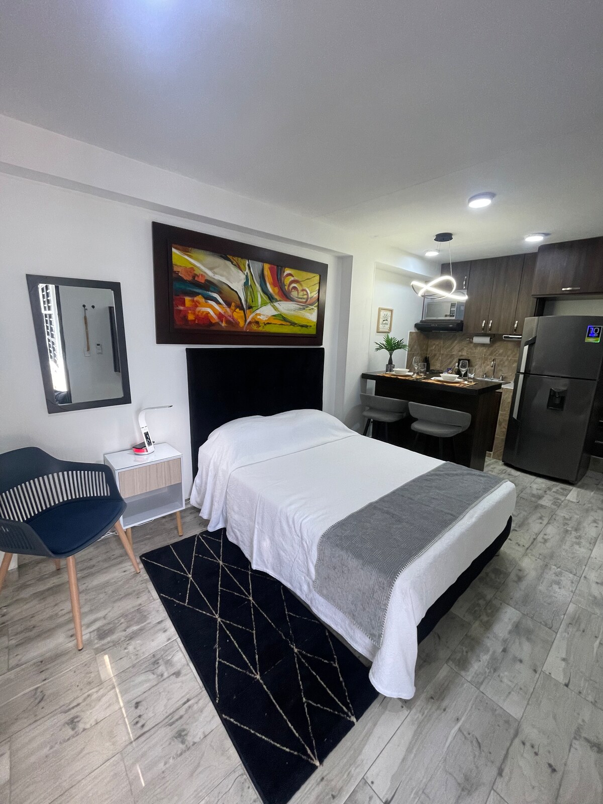 Nuovo monolocale La Flora - Norte Cali, zona tranquilla, area urbana di spicco. Aree gastronomiche, turistiche, commerciali e centri commerciali come Chipichape, aree verdi - Parque La Flora. Aeroporto nelle vicinanze. Appartamento (31 m²) - Frigorifero - Lavasciuga - Cucina - Macchina per il caffè - Forno a microonde - Aria condizionata -smart TV - Letto matrimoniale - Divano letto - Scrivania/sedia per PC - Tavolo da bar per la colazione e 2 sedie -Tavolino da caffè - Internet Wi-Fi 200 megabyte - TV via cavo - Netflix - Amazon Prime
