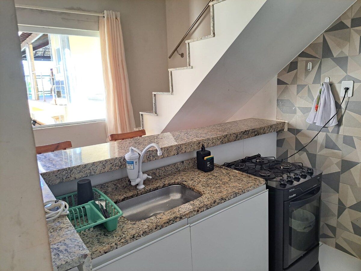 Rilassati con tutta la famiglia in questo alloggio tranquillo tra Barra do Jacuípe e Guarajuba. A soli 30 km dall'aeroporto di Salvador e 20 km da Praia do Forte 3/4 di chalet, a piedi sulla sabbia con infrastrutture complete, in una comunità recintata a meno di 50 metri dal mare: - Cancello elettronico; - Cucina attrezzata; - Connessione Internet - Televisione in salotto; - Balcone con amaca e tavoli; - Doccia esterna; - Garage per 2 auto; - Barbecue; Ronda/Vigilåncia;