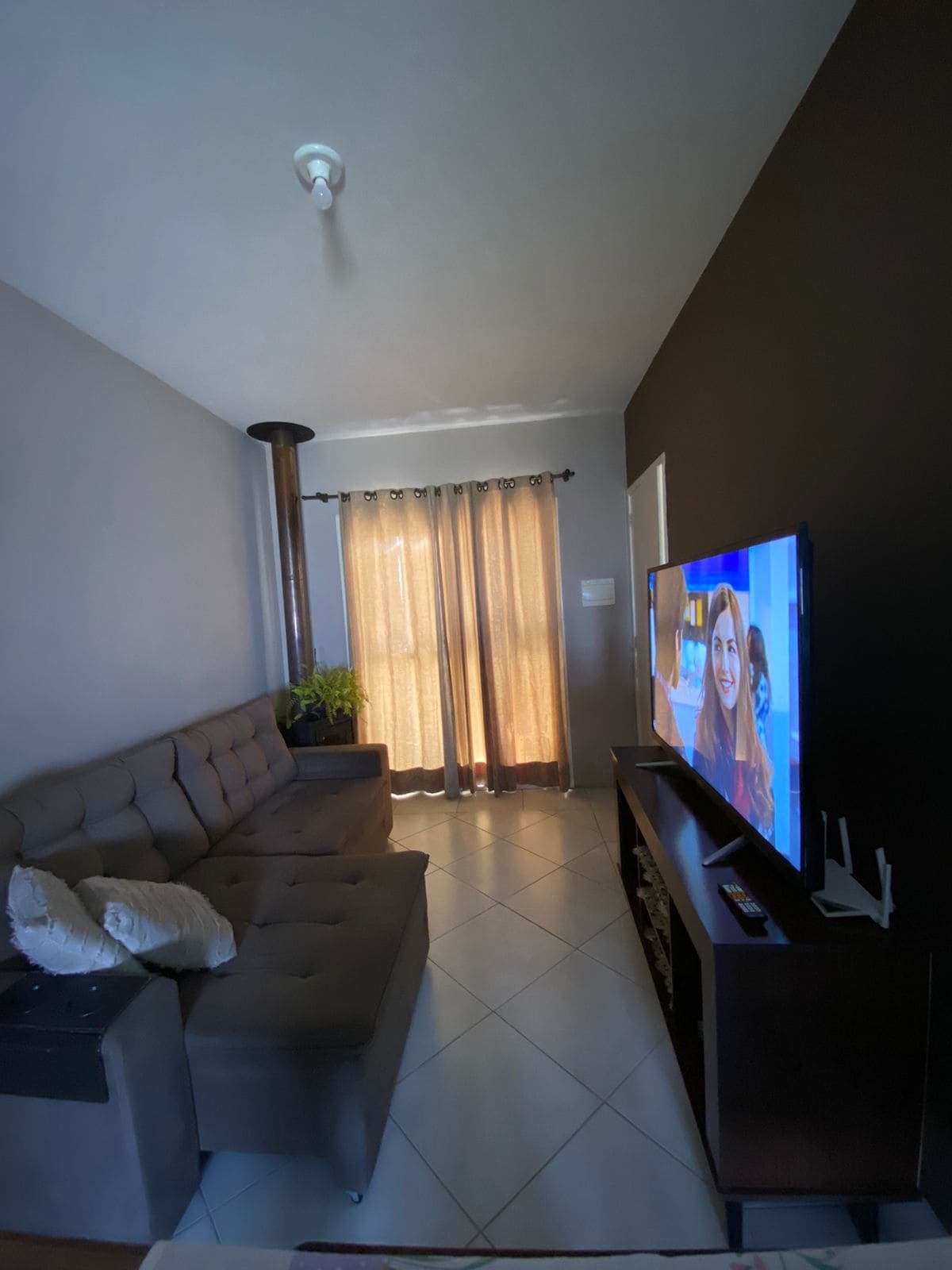 Apartamento localizado no centro de Camaquã, bem ao lado da praça principal, próximo a mercado, farmácia, bancos, rodoviária, prefeitura… Possui garagem coberta para um carro. Possui cozinha completa, um quarto com cama de casal, um colchão de solteiro e um sofá cama grande, sacada, sala de estar com TV, mobília e decoração aconchegante pensada para garantir uma estadia única para nossos hóspedes.