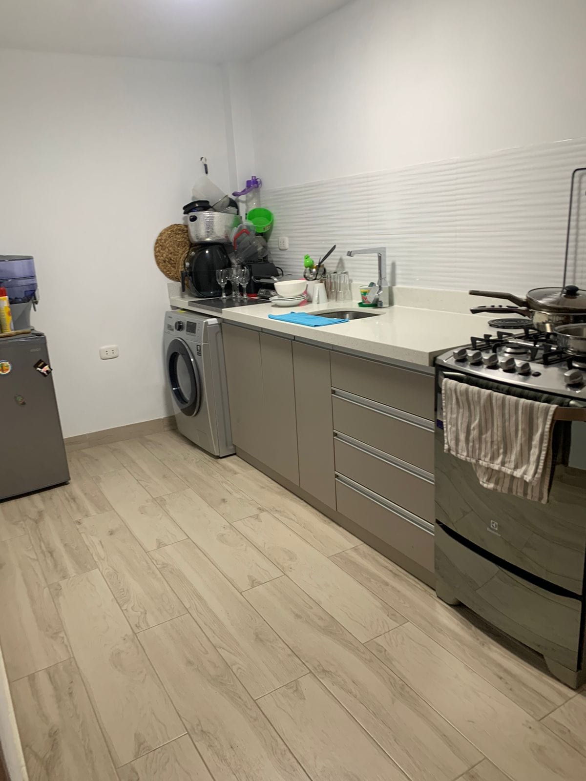 Moderno y acogedor departamento de estreno ideal para parejas o viajeros solos. Cuenta con 1 habitación con cama queen y ropero empotrado, sala cómoda con Smart TV y escritorio, cocina equipada con electrodomésticos modernos y baño completo con agua caliente. Un espacio funcional y confortable, perfecto para una estadía práctica y relajante.