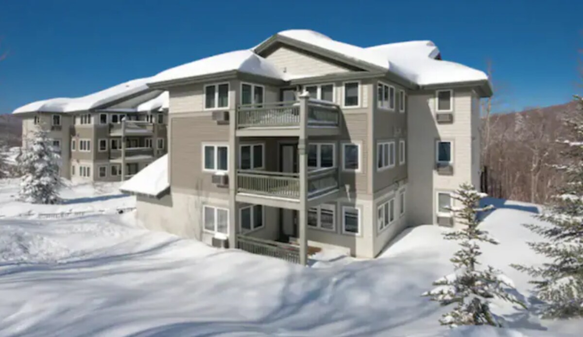 Svegliati con una vista impareggiabile sul Monte Mansfield da questa residenza Treehouse arredata da designer a Spruce Peak Village, la principale destinazione sciistica di Stowe. Questa casa d'angolo con 2 camere da letto + camera a castello si estende su 133 m² di lusso alpino e può ospitare comodamente 8 persone. Goditi un balcone coperto con vista sulle piste, elettrodomestici Bosch di alta qualità, una vasca da bagno + doccia in vetro, parcheggio in garage e accesso diretto a impianti di risalita, ristoranti e spa, tutto a pochi passi dalla porta di casa.