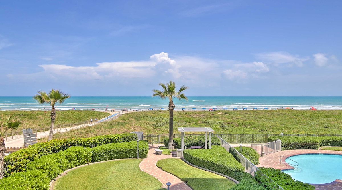 Enjoy the best of South Padre Island from this beautifully remodeled waterfront condo. This 2-bedroom, 1.5-bath retreat features a private balcony with stunning ocean views. The northeast-facing position means natural light all day without glare, and on summer Fridays or holidays, watch bay fireworks from your balcony. The beach is steps away, with local seafood restaurants within easy walking distance. The condo features island-inspired décor, brand-new furnishings, and a bright, modern feel. The living area includes a new queen sleeper sofa and large 4K Smart TV. The fully equipped kitchen has both Keurig and drip coffee makers, blender, and complete cookware. Dine indoors or enjoy meals on the furnished balconies. The primary bedroom has a king bed; the second bedroom offers a queen. Both feature new mattresses for restful sleep. The layout accommodates couples, families, or small groups comfortably. Complimentary WiFi, central AC, linens, towels, and essentials are provided. Community amenities include a large outdoor pool, hot tub, private beach access, fitness center, sauna, grilling area, courtyard, lounge spaces, and laundry facilities. Beach chairs, canopy, boogie boards, and beach toys are included for stress-free beach days. Whether you're here to fish, relax, explore Schlitterbahn, or enjoy island life, this waterfront condo offers an unbeatable location and everything needed for a memorable getaway.