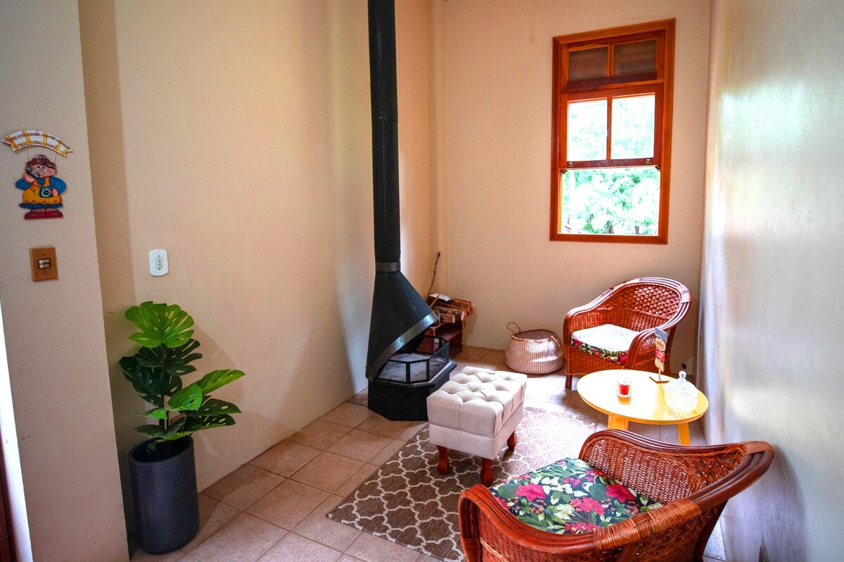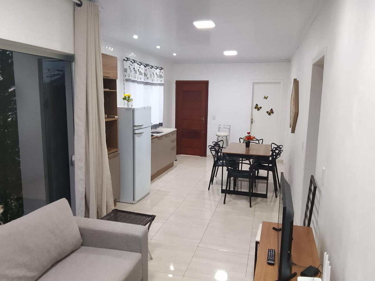 Posto esuberante, accogliente e tranquillo ai piedi della Serra Gaucha. Ideale per coppie e famiglie che cercano pace e contatto con la natura. La guest house si trova nella proprietà della residenza dell'host. Dispone di una cucina completa, con utensili, Air Fryer, pentole, frullatore, stufa a legna, fornelli, frigorifero, macchina per il caffè, forni, tostapane, paniniere, macchina per il ghiaccio. Ampio patio con campo da pallavolo, barbecue esterno, gazebo, terrazza con piscina e vista sulla città.