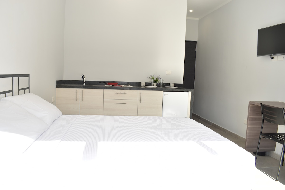 Fuggi a Quetzal Loft, uno spazio moderno ed esclusivo in un condominio privato con sicurezza 24 ore su 24, 7 giorni su 7. Progettato per chi cerca privacy, comfort e un tocco di natura, questo loft offre un'esperienza unica in città. ✨ In evidenza: • Ingresso privato per una totale privacy. • Cucina attrezzata solo per te. • Bagno termale con doppio lavabo e doppia doccia. • Terrazza esterna circondata da alberi, ideale per rilassarsi o gustare un pasto all'aperto.