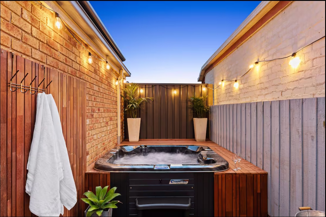 We offer you the opportunity to stay in our fully equipped, private, purpose built, Apartment at the rear of our home. Suitable for 4 adults, 1 child, 1 infant. In the coastal village of Queenscliff, only 1.5hrs from Melbourne, with easy access to the Great Ocean Road. Your hot tub, set in the privacy of the rear garden & sunset from the adjacent walking path. Easy walk to Harbour, local shops/restaurants, Blues Train & beach. Comfy beds, quality linen & continental breakfast all included.