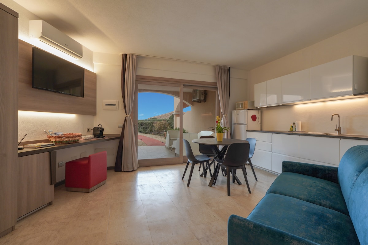 Minicasa situata a Porto Pollo, "paradiso del kite e del windsurf". È un monolocale completamente attrezzato. Perfetto per coppie o piccole famiglie, offre un letto matrimoniale e un divano letto. Dal patio coperto si può ammirare una baia e una valle. La cucina è completamente attrezzata (forno a microonde, macchina per il caffè e bollitore). Una seconda doccia si trova nel patio. Sono inclusi anche wi-fi, tv, lavatrice e condizionatore. Inoltre, c'è un parcheggio privato. Dista 5 km da Palau e 35 km da Olbia.