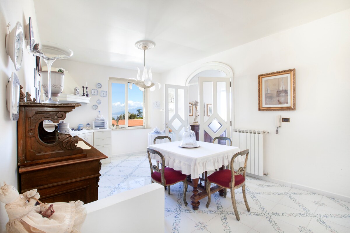 The beautiful apartment was completely renovatedin 2021.The apartment is located on the second floor of an ancient building without elevator. The apartment is tastefully furnished in Mediterranean style,and includes a double bed sitting area, full kitchen marble table and 4 chairs,large wardarobe, 1 television and it is equipped with all the conforts and service, heating and air conditioning,internet wifi.The apartment overlooking the sea with stunning views of the Sorrento Peninsula