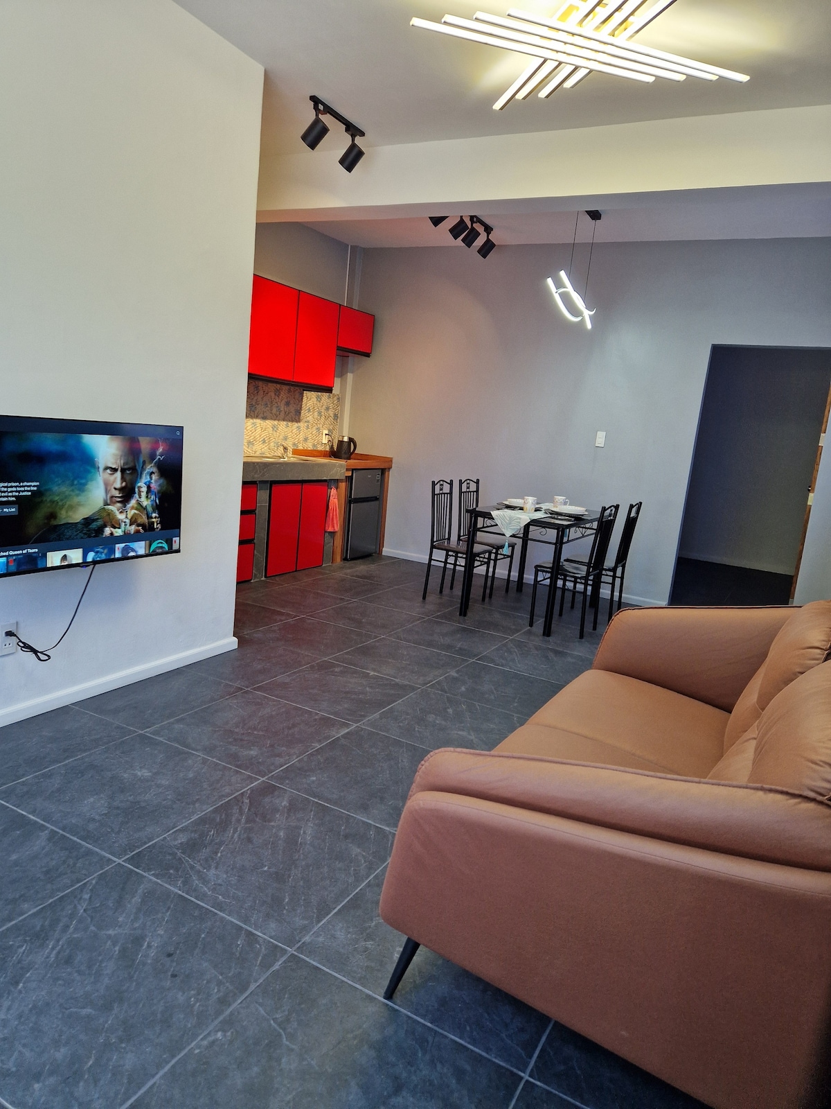 Dimentica le tue preoccupazioni in questo spazio spazioso e tranquillo. Questa casa può ospitare comodamente da 1 a 6 persone. fornisce: Frigorifero wifi fornello a induzione pentola per il riso bollitore elettrico smart tv utensili da cucina camera 1: letto matrimoniale con aria condizionata split da 1 hp camera 2: letto a castello con letto matrimoniale sul letto inferiore e letto singolo sul letto superiore con aria condizionata portatile da 1 hp.