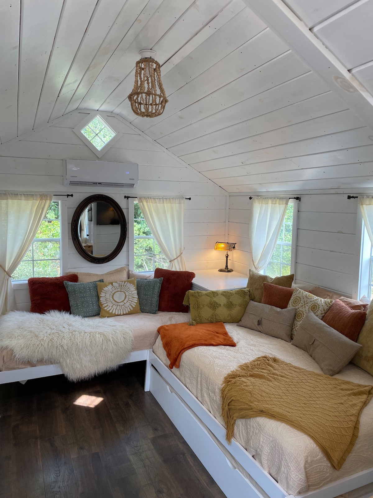 Cottage open space con molto spazio per una o due persone, situato nel quartiere storico di New Harmony. Parcheggio gratuito in strada, zona salotto e comodo letto matrimoniale. Lavatrice/asciugatrice e un piccolo angolo cottura (senza fornelli o piano cottura). Wi-Fi e Smart TV a disposizione. Porta le tue password di Netflix o Hulu. Sii nostro ospite nel tuo spazio. Check-in e check-out facili senza contatto. Caffè/tè al bar o Black Lodge Coffee! *Per tua informazione, controlla gli orari di negozi e ristoranti che intendi visitare.