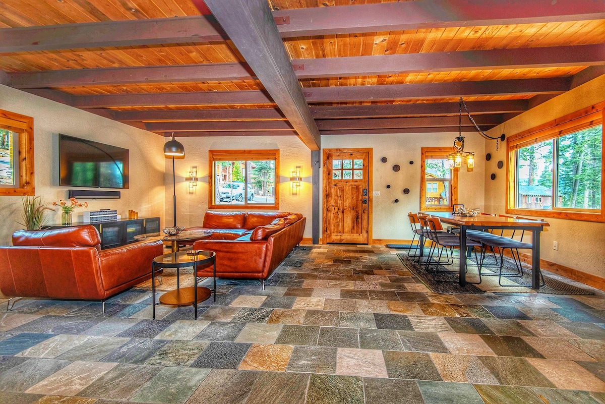 Ora con aria condizionata! Chalet con tetto spiovente ristrutturato, immerso in un fantastico quartiere privato. Perfettamente situato tra Northstar, Squaw, Tahoe City e Kings Beach. C'è un enorme lotto adiacente da godersi, oltre a centinaia di chilometri di piste ciclabili, escursionistiche e da pesca nel giro di pochi isolati. C'è una camera da letto al piano inferiore con bagno annesso, oltre a una camera da letto mansardata al piano superiore con bagno adiacente. Connessione Wi-Fi mesh da 250 MB, caricabatterie Tesla EV (si applicano tariffe di utilizzo)