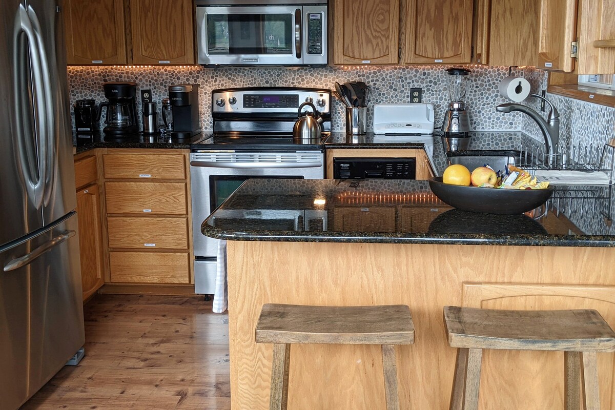 Chalet sull'isola boscosa, cucina gourmet, 2 camere da letto/1 bagno