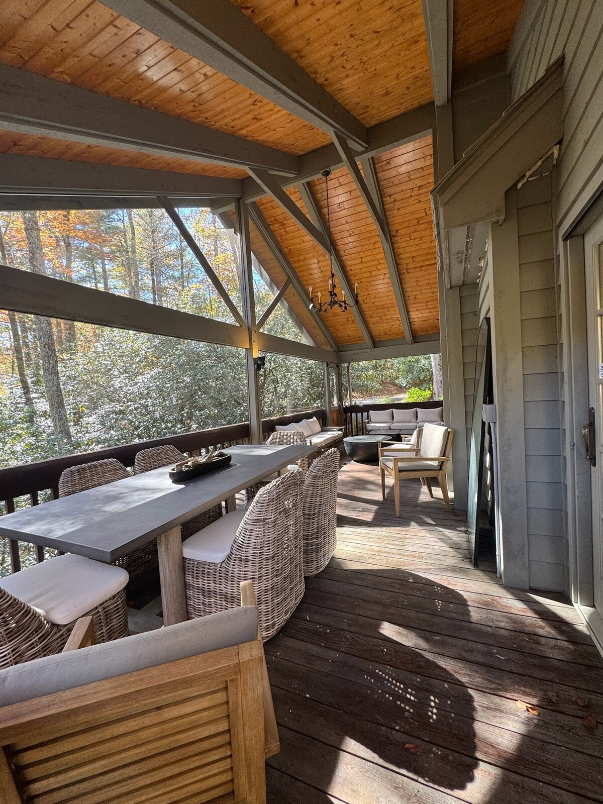 Scopri una splendida baita ispirata agli anni '50, immersa in 1,6 ettari privati vicino a Cashiers e Highlands, NC. Progettato con cura con linee pulite, caldi toni del legno e arredi di ispirazione vintage, questo elegante rifugio dispone di un portico coperto schermato, un focolare, una griglia a gas e una spaziosa terrazza per rilassarsi o ammirare le stelle. Circondato dalla natura ma vicino alla città (20 minuti di auto), è la miscela perfetta di design mid-mod, comfort e isolamento in montagna. Prenota oggi stesso la tua vacanza indimenticabile!