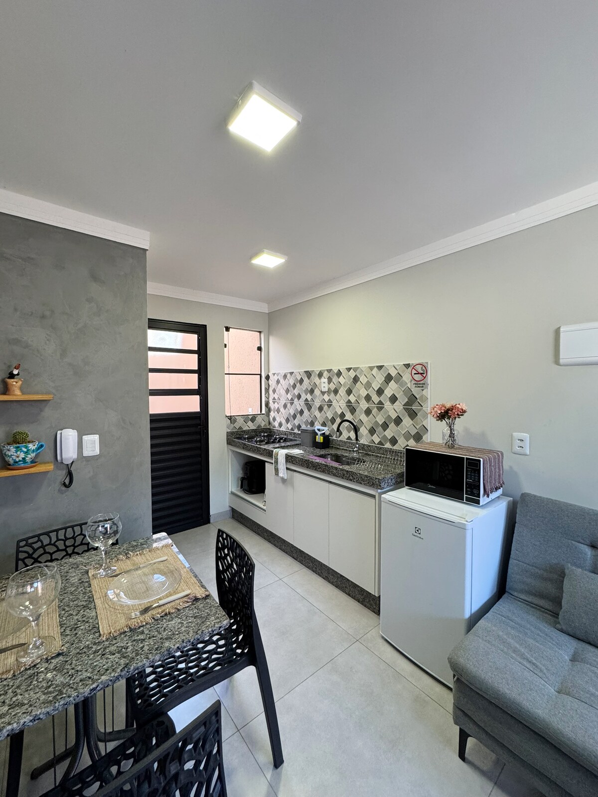 * Loft standard nel centro di Andradina * Segui @loftandradina - 1 camera da letto con letti matrimoniali con biancheria da letto. - 1 divano letto, ideale per ospiti extra. - Puoi portare un materasso in più, posto grande 48 m². - Parcheggio privato. - Bagno privato, moderno e attrezzato. - Cucina e soggiorno integrati, con tutti gli utensili minimi necessari. - Aria condizionata da 24.000 BTU. - A 3 minuti da Acqualinda Park, vicino ai principali ristoranti della città. - Sono ammessi piccoli animali domestici.