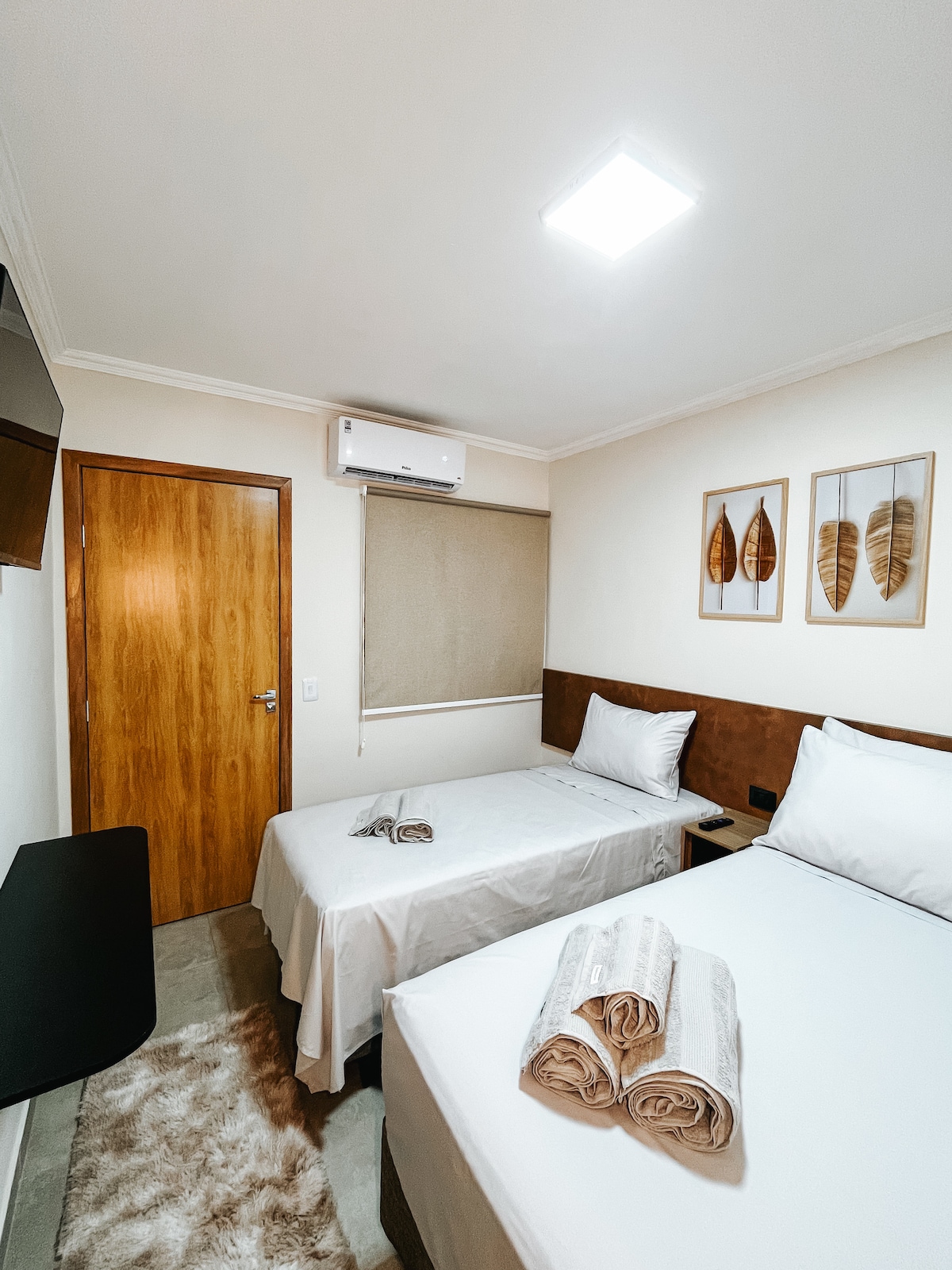 Apto Bem-te-vi - n°01 - RecantobemteviTL - É tipo Kitnet, Camas BOX LUXO CASAL e SOLTEIRO com lençol e toalhas premium. Mesa com cadeiras, Cabideiro aberto com prateleiras. Cozinha:frigobar fogão cooktop cafeteira chaleira sanduicheira panela de arroz frigideira e kit cozinha. Ar Condicionado 12 mil BTUs. Piscina sem grades, Garagem e Lavanderia compartilhados com Jardim. Diferencial Faxina e troca enxoval a cada 7 diárias! Valor para uma pessoa até 3 hóspedes. Próximo a UFMS, AEMS e Havan.