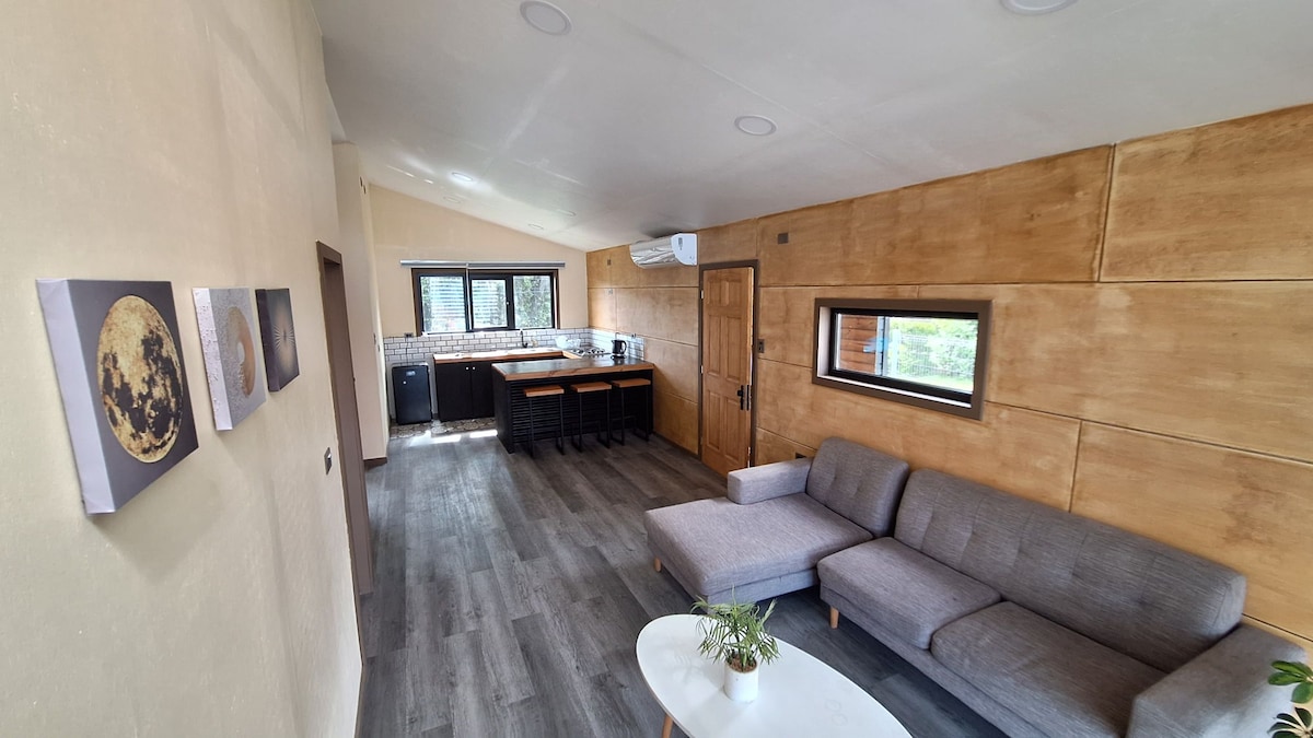Escápate a este refugio autosustentable en Achao diseñado por Edward Rojas. Vistas al mar desde cada rincón y Hot Tub privado para el descanso total. Tu día aquí: remar en SUP, leer junto a la estufa a pellet, ver cine en el proyector o tocar guitarra junto a un fogón sin humo. Con WiFi, pequeño escritorio y fácil acceso: a 5 min del pueblo y 40 min del aeropuerto. Un entorno de paz, a 5 min caminando a la playa! Ideal para 2-3 personas que buscan volver su equilibrio en este entorno mágico.