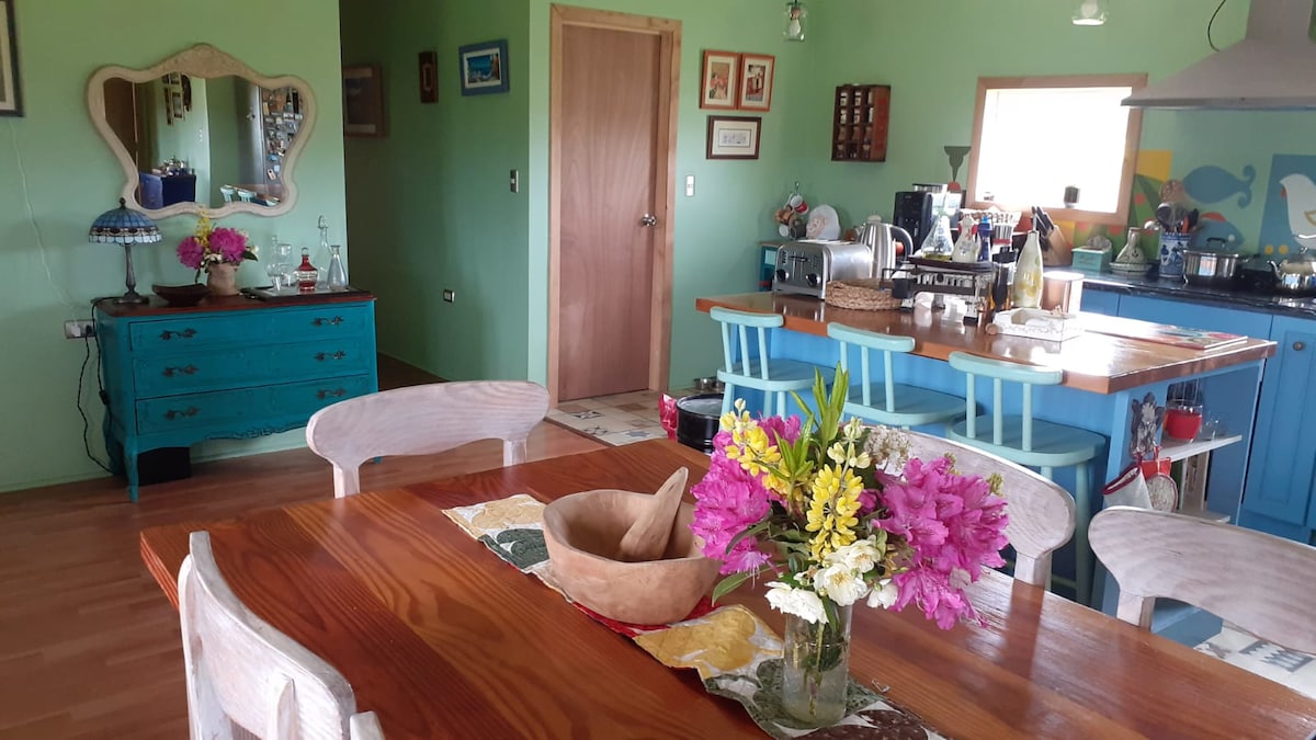 Casa accogliente ben attrezzata, situata nella periferia di Dalcahue. Ogni camera è arredata e decorata con lo stile "Chiloé", riscaldamento centralizzato (quindi, non c'è una temperatura fredda a casa!!) e un'impressionante vista panoramica sul canale e sulla campagna e sulle colline circostanti.