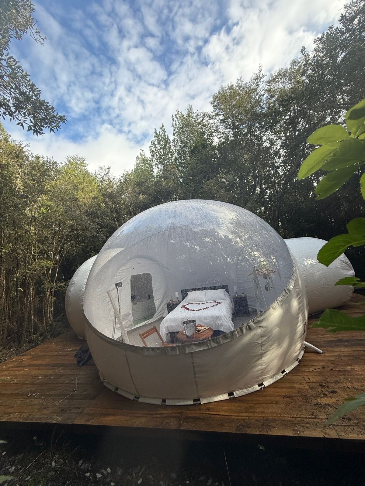 Goditi un'esperienza di lusso soggiornando in questo speciale luogo a cielo aperto, situato all'interno di una foresta nativa, godendoti il fascino dell'isola di Chiloé. Hotel Open Sky Burbuja Chiloé è un'esperienza esclusiva a livello nazionale, essendo una catena di hotel presente in destinazioni strategiche in tutto il paese. Questo alloggio ti invita a connetterti con la natura, goderti la calma e la tranquillità, riposare e, soprattutto, riscoprire la semplicità della vita.