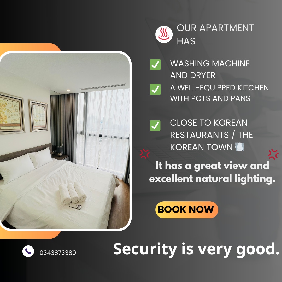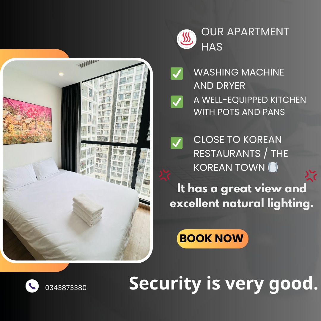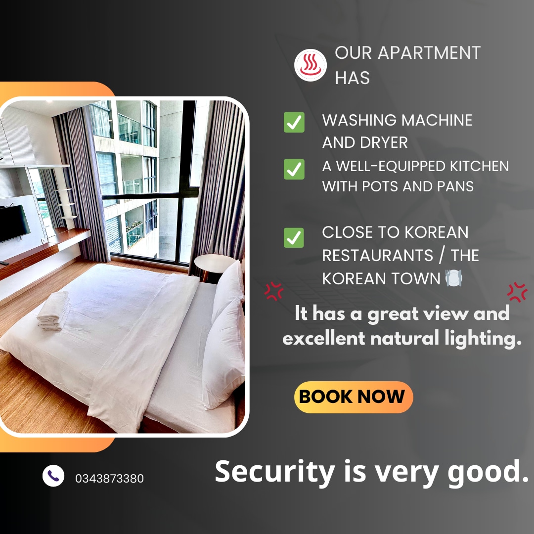 ⦁.˚ Un caloroso benvenuto ad Autopia Stay♬ .˚ Qui abbiamo: check-in automatico + servizi completi + tranquillità assoluta Non sono solo un host, ma anche un compagno durante la tua vacanza Invia il tuo appartamento servito (marchio VINHOMES). L'appartamento si trova nel complesso di appartamenti di lusso Vinhomes Skylake, posizione privilegiata vicino a KeangNam, Korean Town e National Convention Center. Questo è uno spazio ampio, aperto e pulito, molto adatto a coppie, gruppi di amici e famiglie.