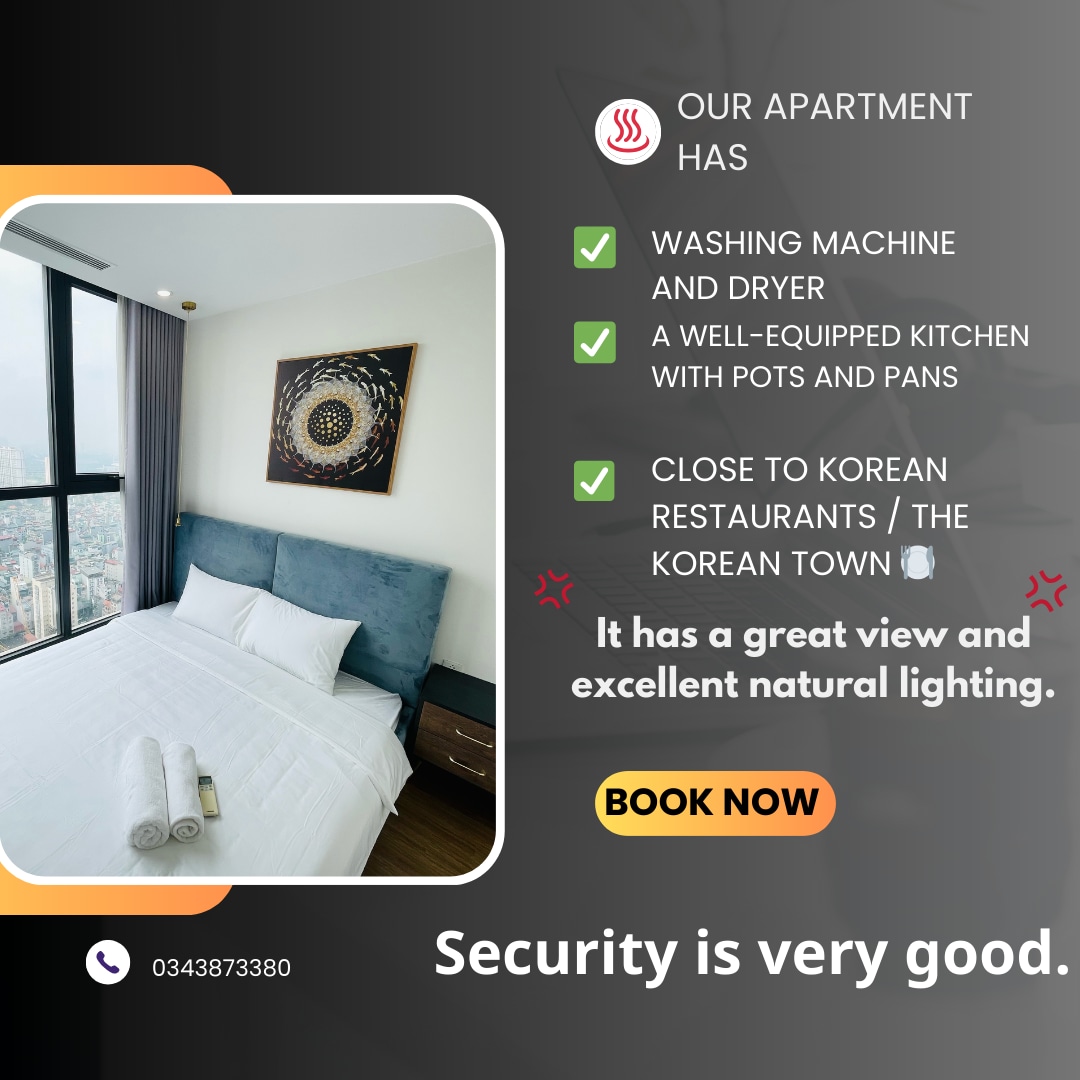 Si tratta di una moderna catena di appartamenti situata nei lussuosi complessi di appartamenti di Hanoi. Vinhomes D'Capitale è uno dei posti migliori in cui vivere, ogni appartamento è arredato con gusto, pulitissimo e ha una splendida vista sulla città, vista lago dai migliori pavimenti. Offriamo alloggi perfetti per coppie, famiglie o viaggiatori singoli.