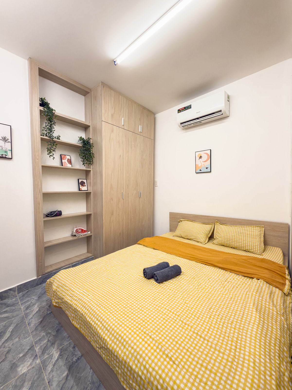 Welcome to our brand-new studio combining luxury and traditional style. - New, Bright, Clean Studio. - Located in the heart of HoChiMinh, and because of at 1stfloor, it's easy to get inside. - Owning a large window, getting more light, air into the room. - Looked like the photos. Full of necessary amenities, outstanding by awesome projector with Netflix. - 24/7 flexible Check-in, easy to find with clear instructions. - High speed WiFi, Air-con, free bike Parking, Laundry and Kitchen with Oven.