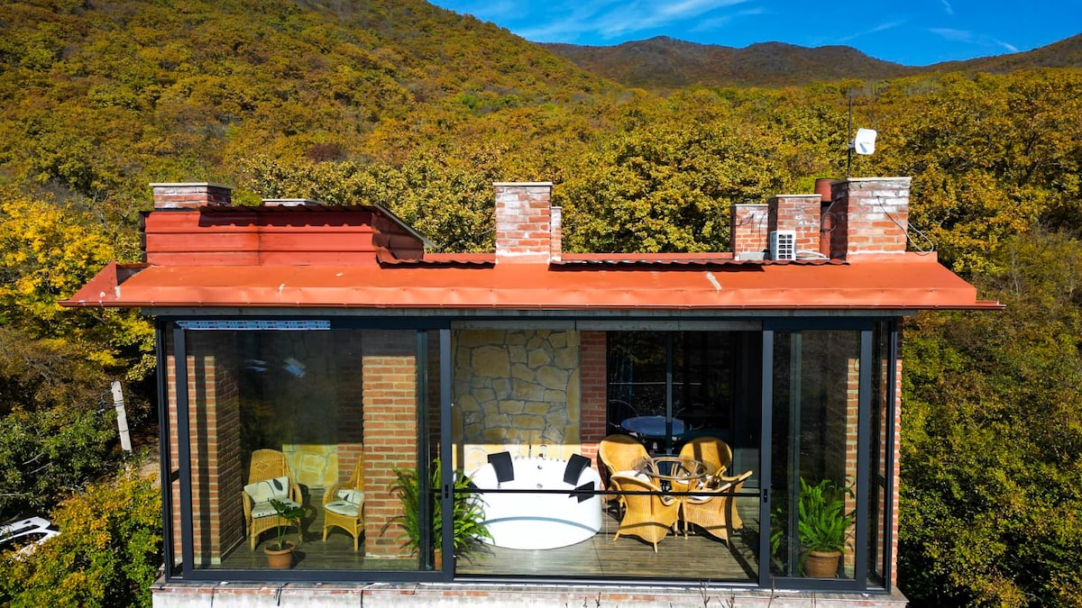 "Khatosi" is a true retreat for friends and families. You will have access to a large hot tub, yoga and basketball areas, ample shared space, extra comfortable beds, a cozy fireplace and a full kitchen. Surrounded by mountains, there are stunning views all around. Sortuani mineral water pool, which offers many health benefits, is just a 5 minute walk away. Local honey, fruit, eggs, milk products, as well as tea and coffee are included in price. Dinner options are available.