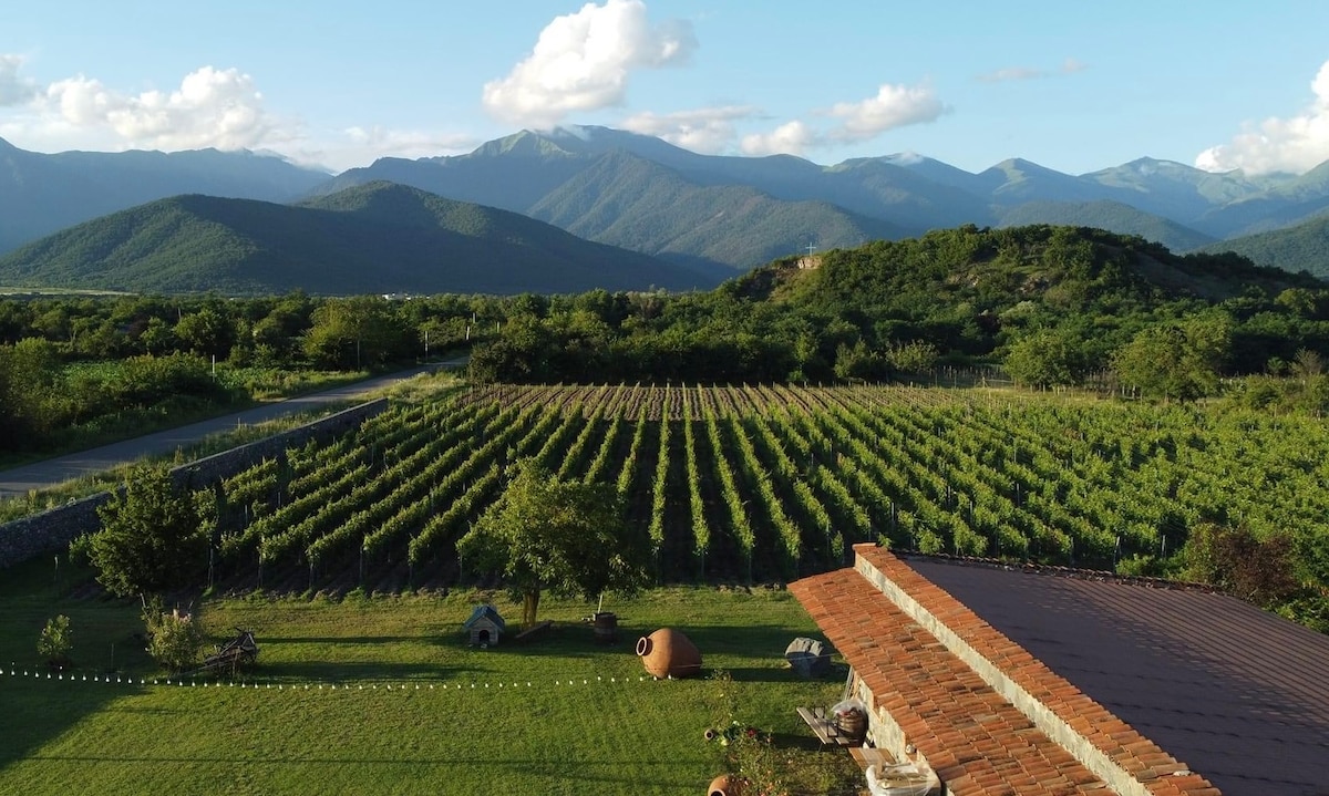 In cima a una piccola collina (Montagna Rossa) a 5 minuti da Ozurgeti, con una rimovibile Kikvata che attraversa il cortile, circondata da una piantagione di nocciole e tè e alberi di bambù, si trova la nostra casa storica in legno con vista su Gomis Mta (montagne del Caucasus del Sud che dividono Guria e Achara). La regione occidentale di Guria è famosa per il carattere e la vivacità della nostra gente, per la sua natura subtropicale distinta e variegata, e faremo del nostro meglio per condividerlo attraverso la nostra ospitalità e i prodotti artigianali.