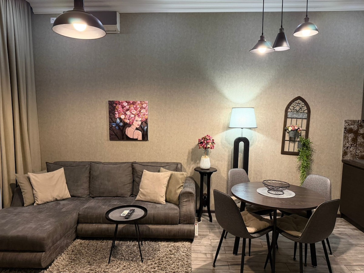Relax in this spacious, fully furnished 1BR apartment in a beautiful, walkable area of Tbilisi. Enjoy a peaceful garden view, self check-in, fast Wi-Fi, and all essentials for a comfortable stay — great for couples, families, or small groups (sleeps 4).