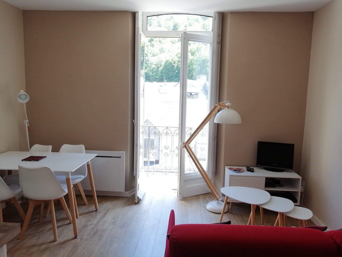 ** Tarif spécial CURISTES, n’hésitez pas à nous demander ** Appartement T2 entièrement rénové et équipé, lumineux avec belle terrasse sans vis-a-vis. Au calme avec places de parking gratuites non privatisées et à 2 pas de toutes les commodités : boulangerie, boucherie, pharmacie, magasins bio dans la rue. Carrefour market et station essence à 5mins à pieds. Hyper-centre à 5 mins à pieds. Cures à 10 mins à pieds. Votre séjour en toute sérénité dans ce logement calme et confortable