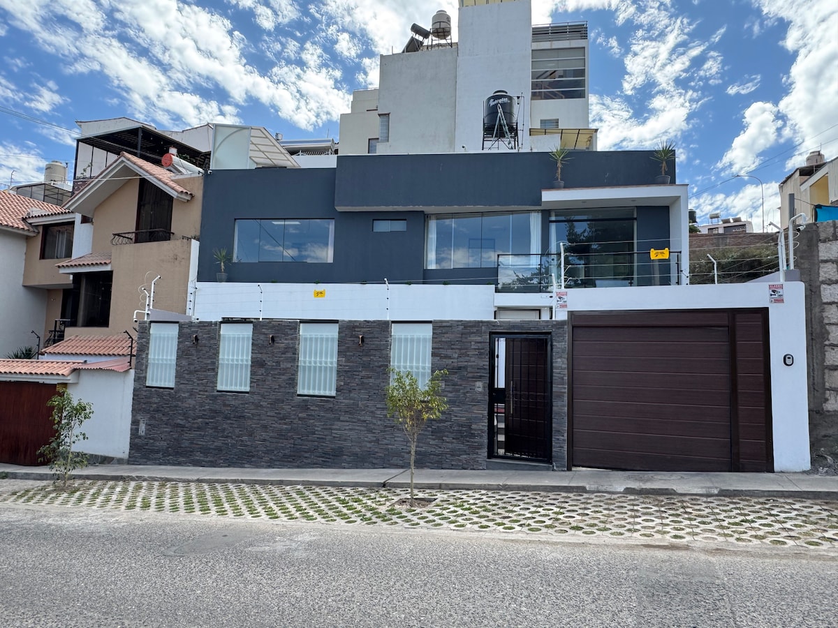 Ti diamo il benvenuto nel tuo soggiorno perfetto a Cayma, ad Arequipa! Questo nuovissimo mini appartamento moderno e accogliente offre tutto il necessario per un soggiorno confortevole ed elegante: Caratteristiche: Cucina accessoriata, salotto, comoda camera da letto e zona lavoro. Accesso all'ascensore: non ci sono scale di cui preoccuparsi. Vista panoramica sul tetto di Arequipa e dei 3 vulcani! Vicino a centri commerciali, quartieri finanziari e cliniche Vicino ai migliori quartieri , ai punti panoramici e al centro città (15 minuti) Questo posto è stato progettato con amore e attenzione.