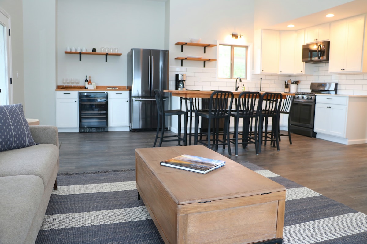 Vieni a goderti gli splendidi tramonti e le viste panoramiche dal tuo patio privato per "staccare la spina". COSTRUZIONE COMPLETAMENTE NUOVA, creata da zero con ogni dettaglio in mente. Goditi la spaziosa casa con 1 camera da letto con letto matrimoniale e divano letto matrimoniale aggiuntivo nel soggiorno per una sistemazione più confortevole. A pochi minuti dalle migliori cantine e da ristoranti meravigliosi! Sono inclusi un angolo bar con caffè per la mattina presto e un braciere per il tramonto e la sera tardi. Ideale per 4 adulti o per una vacanza in famiglia!