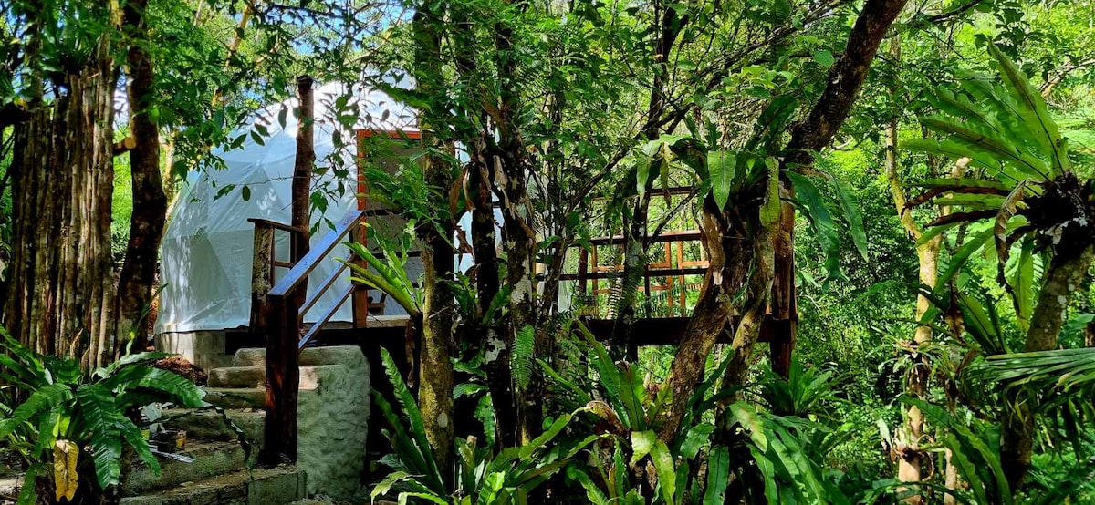 Scopri la tranquillità a Seijaku, immerso nella zona boschiva più fitta di Juan's Place. Questa cupola privata ed esclusiva offre una vista mozzafiato sulle felci lussureggianti e sulla foresta serena, rendendola una fuga perfetta per un gruppo di massimo 4 persone. Con servizi igienici e bagno all'interno della cupola e una terrazza privata, Seijaku unisce comfort e natura per un'esperienza di glamping indimenticabile.
