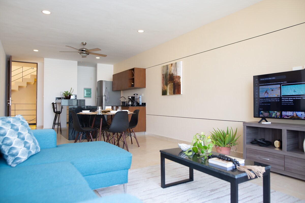 Ti diamo il benvenuto nel tuo rifugio a Temozón Norte, una delle zone in più rapida crescita di Mérida, che conserva ancora la sua tranquillità e l'ambiente naturale. Il nostro appartamento con una camera da letto è l'ideale per rilassarsi e divertirsi: dispone di un letto king size, un armadio, un bagno privato e un comodo divano letto matrimoniale nel soggiorno per ospiti aggiuntivi. Goditi la tua piscina privata sulla terrazza o approfitta dei servizi dell'edificio come la palestra, la piscina comune, il parco per animali domestici e la sala eventi.