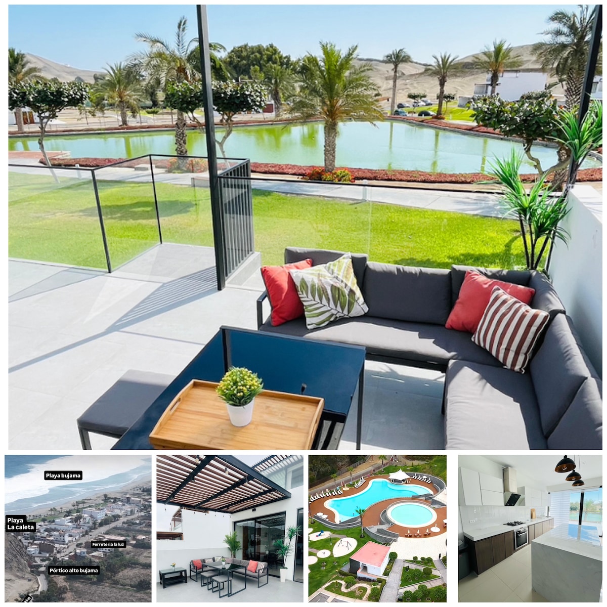 Divertiti con tutta la famiglia in questo alloggio dallo stile moderno. Piscina, griglia, kamado, cavo, Internet ad alta velocità e tutti i comfort a pochi metri dalla spiaggia. La casa, di recente costruzione, dispone di 4 camere da letto, cucina attrezzata con stoviglie, posate, utensili, elettrodomestici e accessori per grill e kamado. La biancheria da letto (lenzuola e cuscino) è inclusa. Il condominio dispone di 2 piscine aggiuntive, ristorante, minimarket e sicurezza 24 ore su 24.