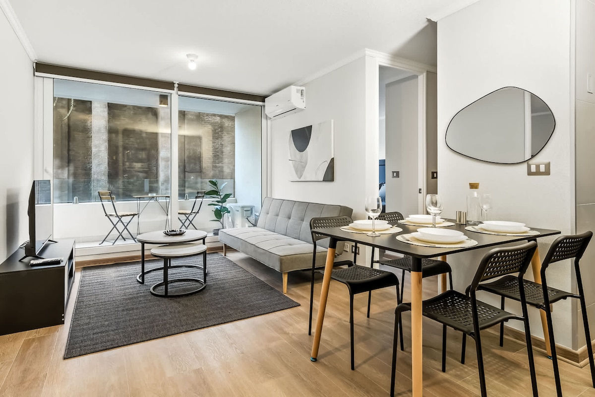L'appartamento gode di una posizione imbattibile nel cuore di Providencia, a pochi passi dal centro commerciale "Costanera Center" e a soli due isolati dalla metropolitana Los Leones. Il luogo è circondato da ristoranti, teatri, pub, caffè, farmacie, librerie e gallerie d'arte. Si trova di fronte al Parque de las Esculturas, che si collega con una pista ciclabile al centro di Santiago attraverso il Parque Balmaceda y Forestal. Il parcheggio, opzionale, ha un costo aggiuntivo di 8.000 $ a notte.