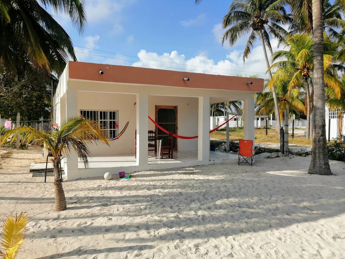 Benvenuti nella nostra casita sulla spiaggia a San Crisanto, nello Yucatan! Situata su una spiaggia tranquilla, questa accogliente casa fronte oceano offre una camera con tre letti matrimoniali, cucina attrezzata, bagno completo e soggiorno. Goditi internet e la TV per il tuo intrattenimento. Rilassati con la vista mozzafiato sull'oceano e la serenità dell'ambiente circostante. Ideale per famiglie o amici in cerca di una vacanza perfetta. Ti aspettiamo per una vacanza indimenticabile!