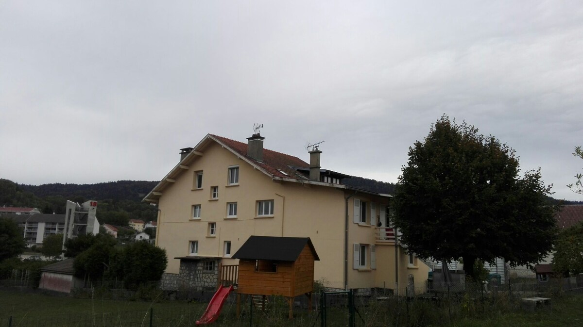 Per una vacanza rilassante: 45€ a notte per 2 persone, e 15€ a notte a persona SUP, alloggio piacevole, situato al primo piano della nostra casa, in un piccolo villaggio tradizionale a 850 m di altitudine (vedi internet "plateau-hauteville" o "Champdor.jimdo"). Goditi con i tuoi figli una nuotata di Champdor a 800 metri. Gantry per bambini dai 3 ai 10 anni in cortile recintato (sotto la supervisione dei genitori). Accesso alla terrazza rivolta a ovest. È possibile noleggiare biciclette +caschi per 2 adulti e 1 bambino.