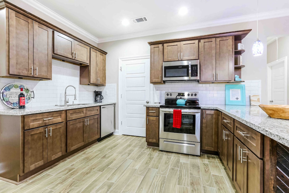 Nuova casa di costruzione completata nel 2025! Dotato di due salotti (uno al piano superiore e uno al piano inferiore), una cucina da chef completamente attrezzata, una cucina all'aperto con barbecue, TV in ogni stanza (e all'esterno), un ampio cortile sul retro, doppi portici frontali, 4 spaziose camere da letto e 3 bagni lussuosi; questa enorme casa di 3500 piedi quadrati è perfetta per i gruppi che visitano la zona che vogliono stare lontani dalla frenesia della città quando è il momento di rilassarsi! Situato a meno di 20 minuti dal Quartiere Francese di NOLA!