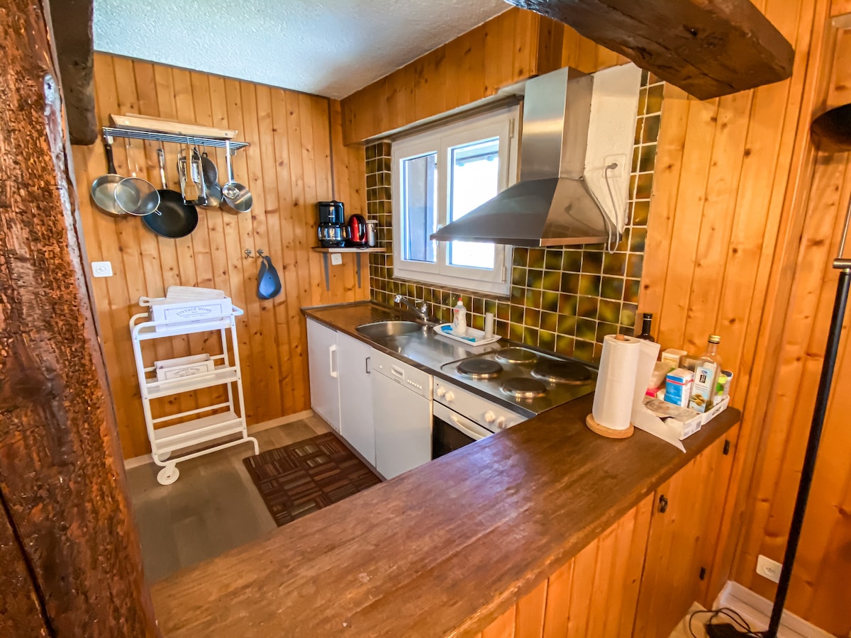 Questo appartamento è composto come segue: - Un bellissimo spazio abitativo mansardato (camera da letto/soggiorno) con zona salotto con 2 poltrone - Una cucina attrezzata: 2 piastre, utensili da cucina, forno a microonde, bollitore, caffettiera, mini frigo con vano congelatore, stoviglie e posate, apparecchio per raclette per 2 persone - Un bagno con doccia + wc - Un accesso indipendente - 1 posto auto Messa a disposizione del garage/locale caldaia per riporre sci, scarponi, biciclette, abbigliamento da sci...