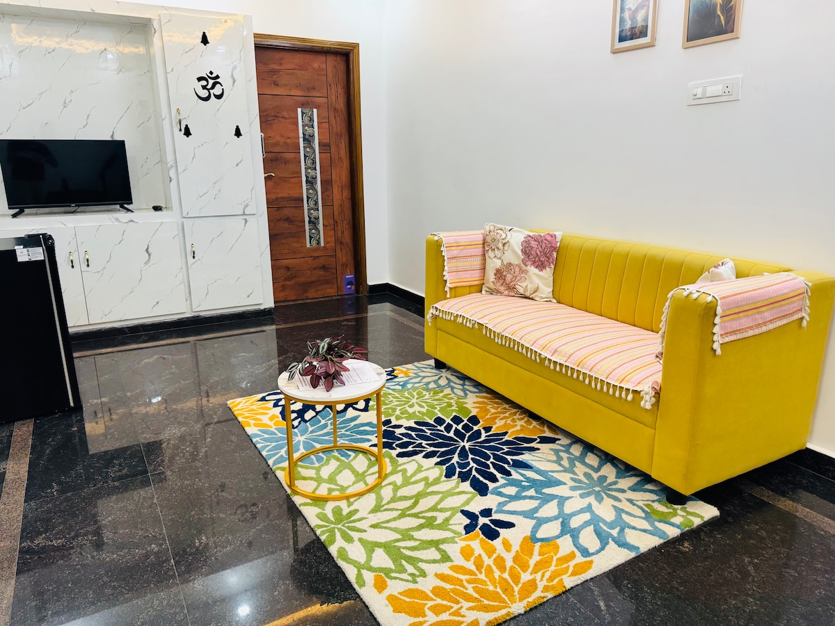 Soggiorna con noi nel nostro nuovissimo e lussuoso 3 BHK, colazione gratuita, soggiorno in famiglia con aria condizionata in una posizione privilegiata. I nostri spaziosi appartamenti offrono un ampio soggiorno e una zona pranzo, nonché camere da letto confortevoli. Siamo situati vicino a ristoranti, caffetterie e un supermercato e siamo facilmente raggiungibili dall'aeroporto e dalle principali autostrade. Vieni a goderti un soggiorno divertente con noi.