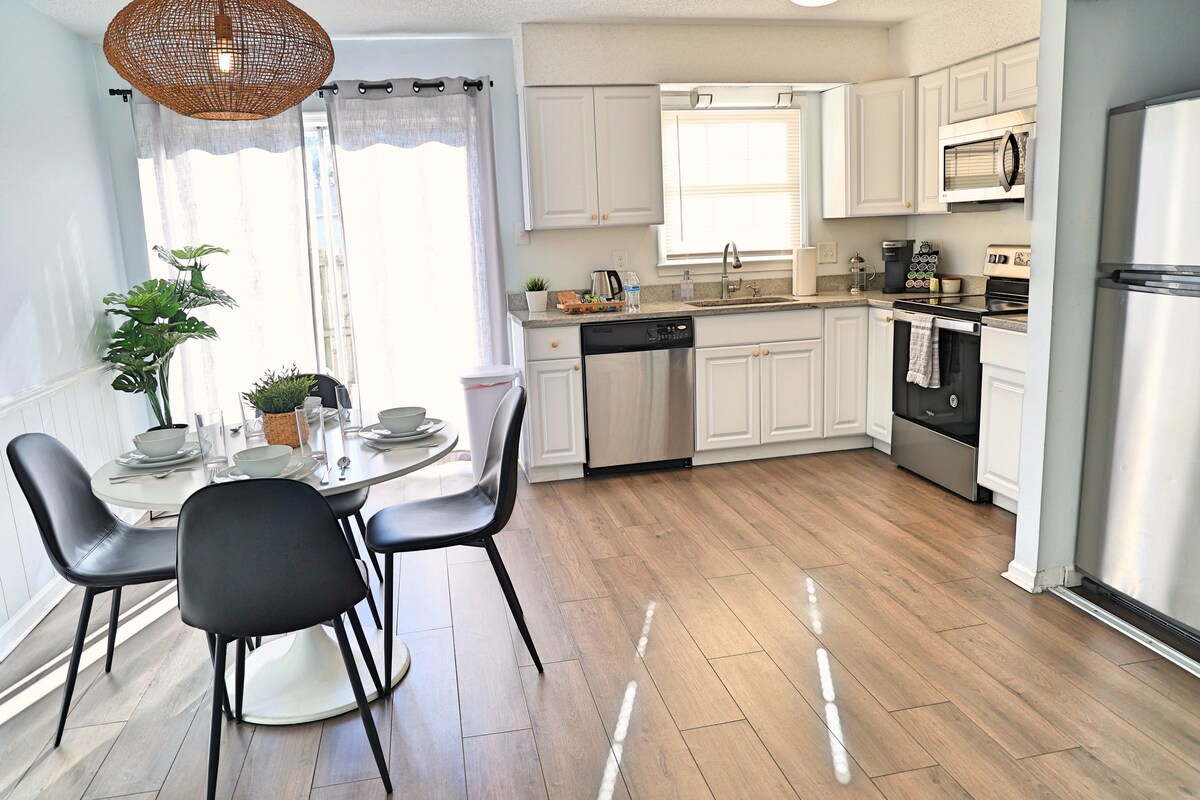 Questa incantevole casa a schiera è una casa a schiera privata appena ristrutturata con 2 camere da letto e 2/2 bagni nel quartiere di Brier Creek. Oltre alle camere da letto e ai bagni, lo spazio include un soggiorno, una cucina completamente attrezzata e una zona lavanderia. C'è una smart tv situata nel soggiorno (senza cavo) La camera da letto principale ha un accogliente letto king-size per 2 persone con molta luce naturale. Questa incantevole casa a due piani con soggiorno e cucina a pianta aperta ti regalerà la migliore esperienza di soggiorno lontano da casa. La nostra casa a schiera in posizione centrale si trova nella famosa comunità del Brier Creek Country Club, dotata di un campo da golf. La nostra community offre l'accesso a una piscina durante i mesi primaverili ed estivi. Ci piace interagire con i nostri ospiti e vogliamo offrire loro esperienze a 5 stelle durante il soggiorno nella nostra incantevole casa a schiera. Se ti stai trasferendo in questa zona, come team di agenti immobiliari saremo più che lieti di mostrarti la città. Che si tratti di contattare un ristorante o dove trovare la carta igienica, siamo a disposizione per chattare tramite l'app di Airbnb, messaggi di testo o telefonata La nostra incantevole casa a schiera si trova nella zona di Brier Creek, a pochi minuti dall'aeroporto, dai negozi, dai ristoranti, dai birrifici e da una vasta gamma di puro divertimento.